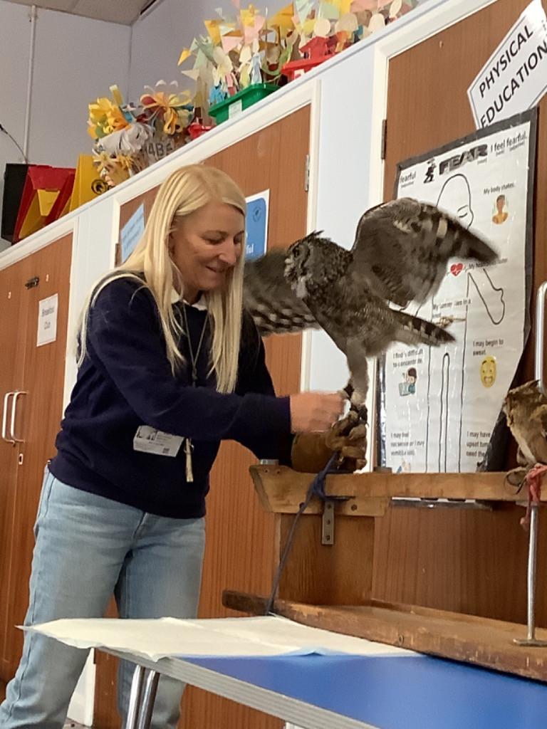 We had an exciting morning meeting owls and learning all about them. We watched them fly around the hall and some of us got to hold them! Both classes then had the opportunity to have their photos taken with a barn owl called Dottie. These are available to purchase and forms will be sent home soon. What a fantastic day!