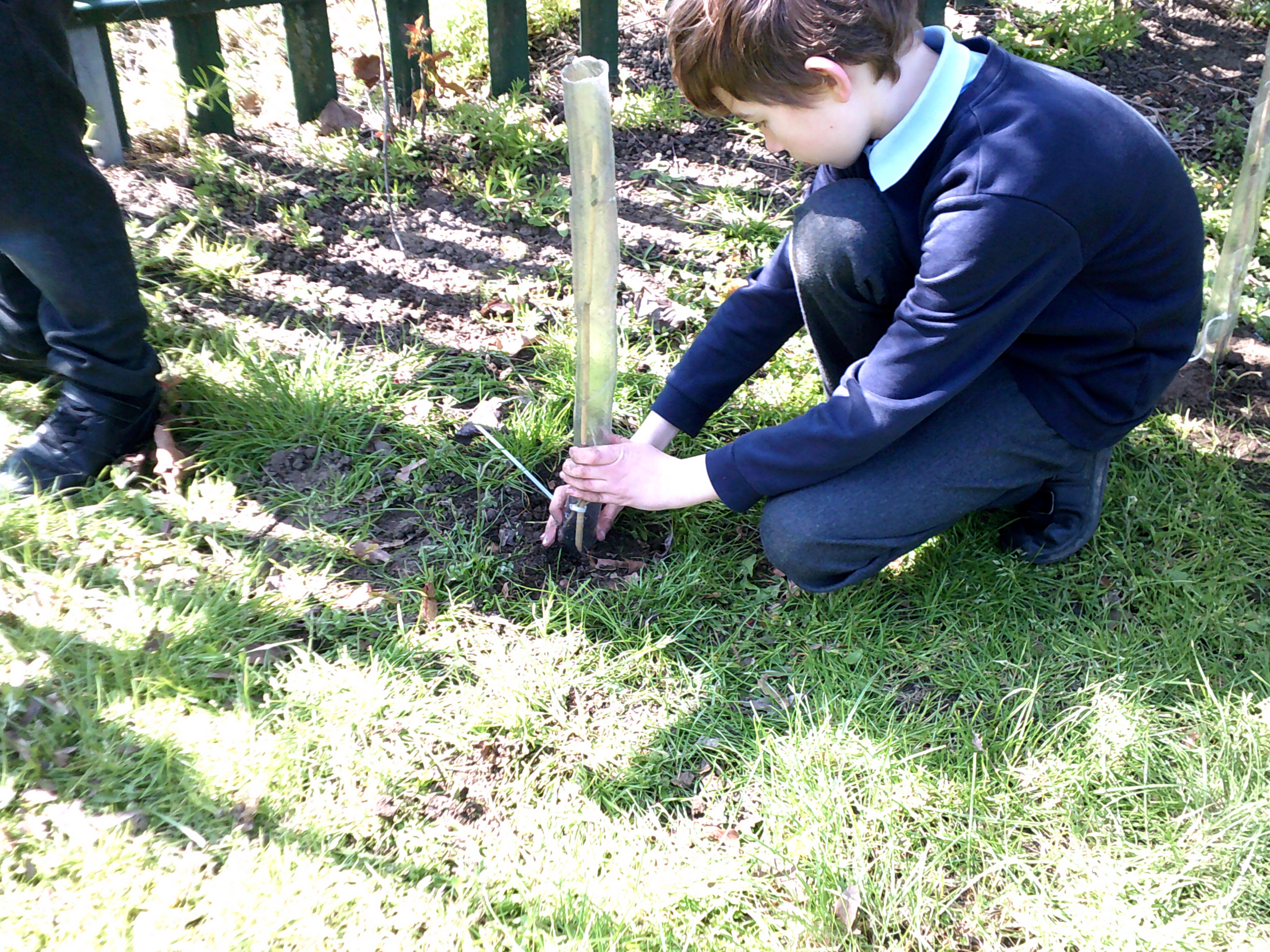 At the start of this term and with the lapse of over night frosts, we pleased to announce that we have planted our first batch of trees.  This will now be an ongoing project for the next two-three trees ensuring that we are vigilant in the weeding of the saplings and making sure that they are not  in-crouched upon-within a circumference of one-metre.