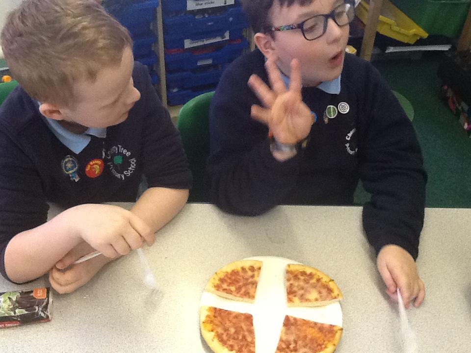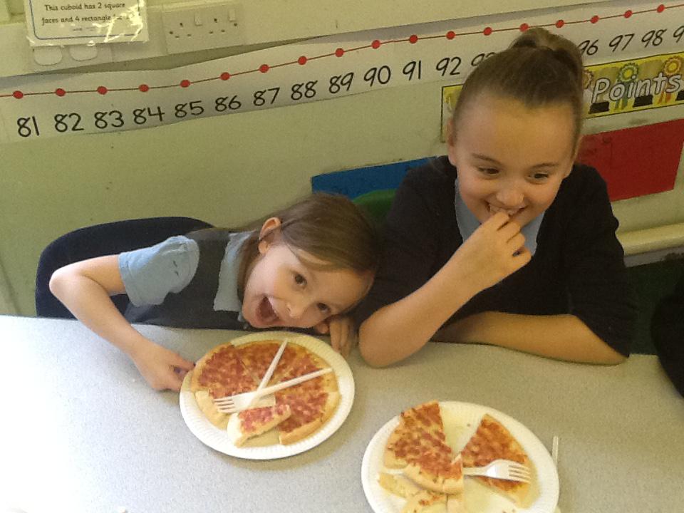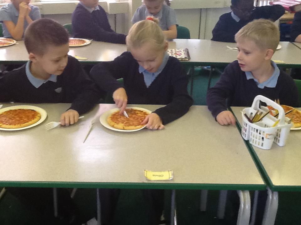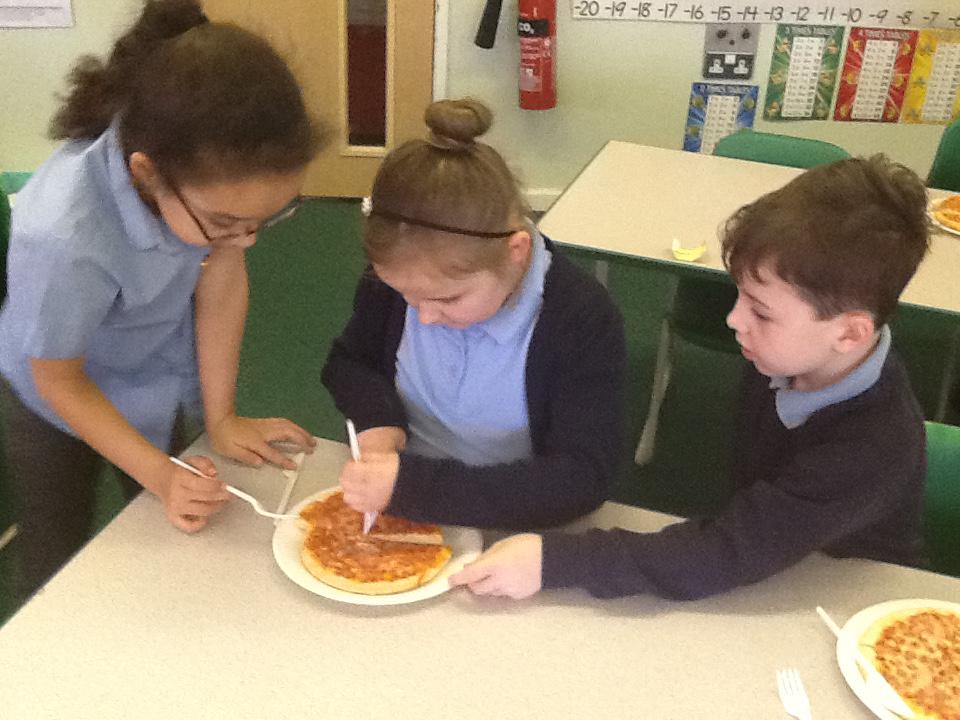 Year 3 compared and ordered fractions by cutting pizzas into different slices.